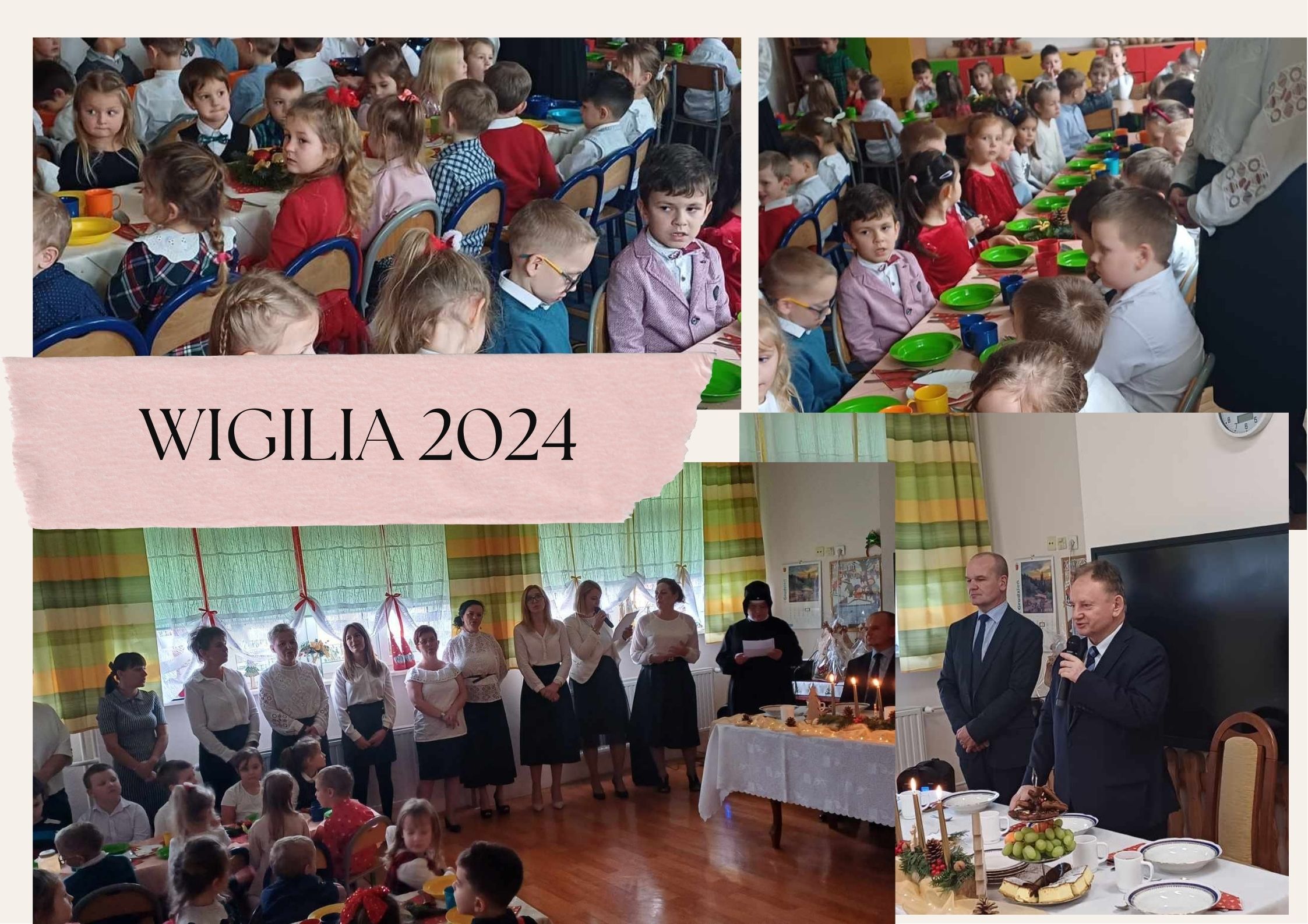 Dnia 16 grudnia br. świąteczna atmosfera zagościła na dobre w naszym przedszkolu. Zgodnie z wieloletnią tradycją odbyło się spotkanie wigilijne całej społeczności przedszkolnej- nauczycieli, dzieci, pracowników przedszkola, a także zaproszonych gości, wśród których był Burmistrz MiG Uzdrowiskowej Muszyna dr Jan Golba, Dyrektor ZSP w Muszynie Pan Andrzej Gancarz oraz Wicedyrektor ZSP w Muszynie Pani Janina Dziedzina. Uroczystość rozpoczęła się od montażu słowno- muzycznego przygotowanego przez nauczycieli i pracowników przedszkola. We wzruszających słowach nauczyciele przypomnieli historię o nocy, w której narodził się Jezus, przynosząc wszystkim ludziom miłość, wiarę, prawdę, wybaczenie, nadzieję, radość i światło.Czas upłynął w bardzo miłej, serdecznej atmosferze. Wszystkie dzieci czuły zbliżające się wielkimi krokami Święta Bożego Narodzenia.