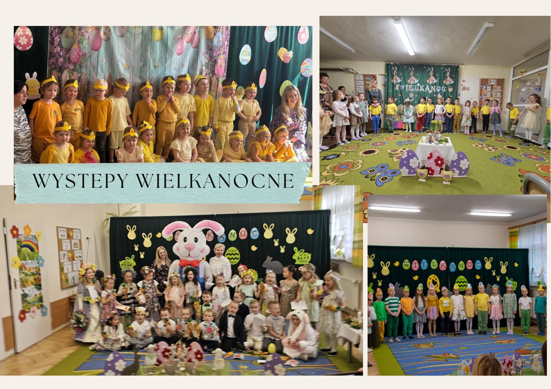 Wielkanoc, wielka radość w sercach. Dużo radości i uśmiechu zagościło w naszych sercach podczas wielkanocnych występów. Zdecydowanie serce publiczności zdobyła wyjątkowa prezentacja umiejętności naszych dzieci. Dzieci szybko pokonały początkowa tremę i pięknie pokazały swoje wokalne, recytatorskie i taneczne zdolności. Dziękujemy rodzicom za pomoc w organizacji imprezy i życzymy wszystkim radosnych Świąt Wielkiej Nocy.