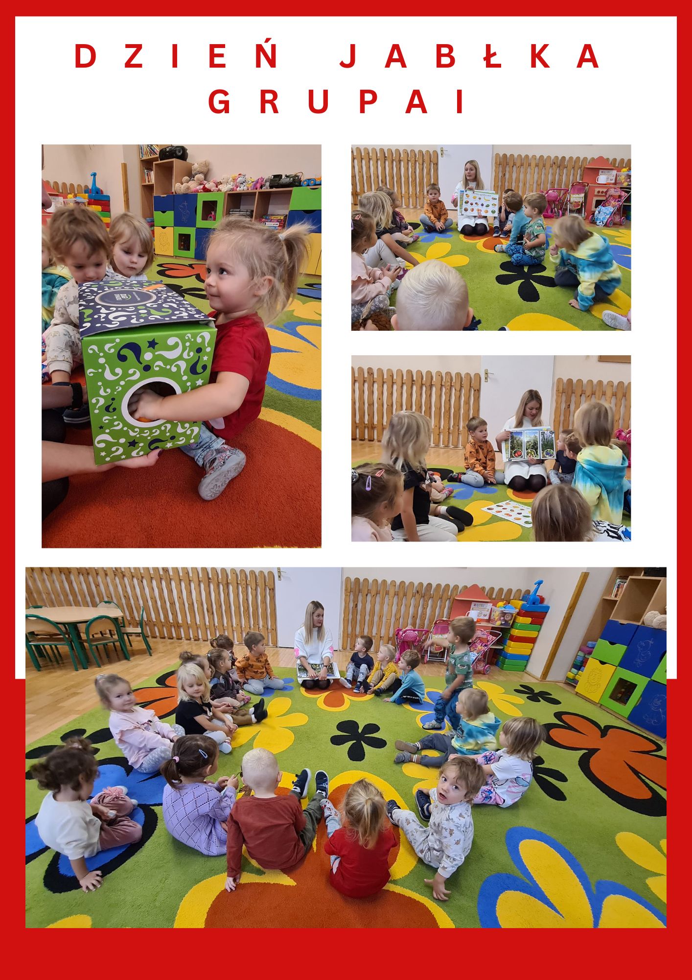 Dzień Jabłka grupa I. Wszyscy mamy słodkie minki,bo zjadamy witaminki.
