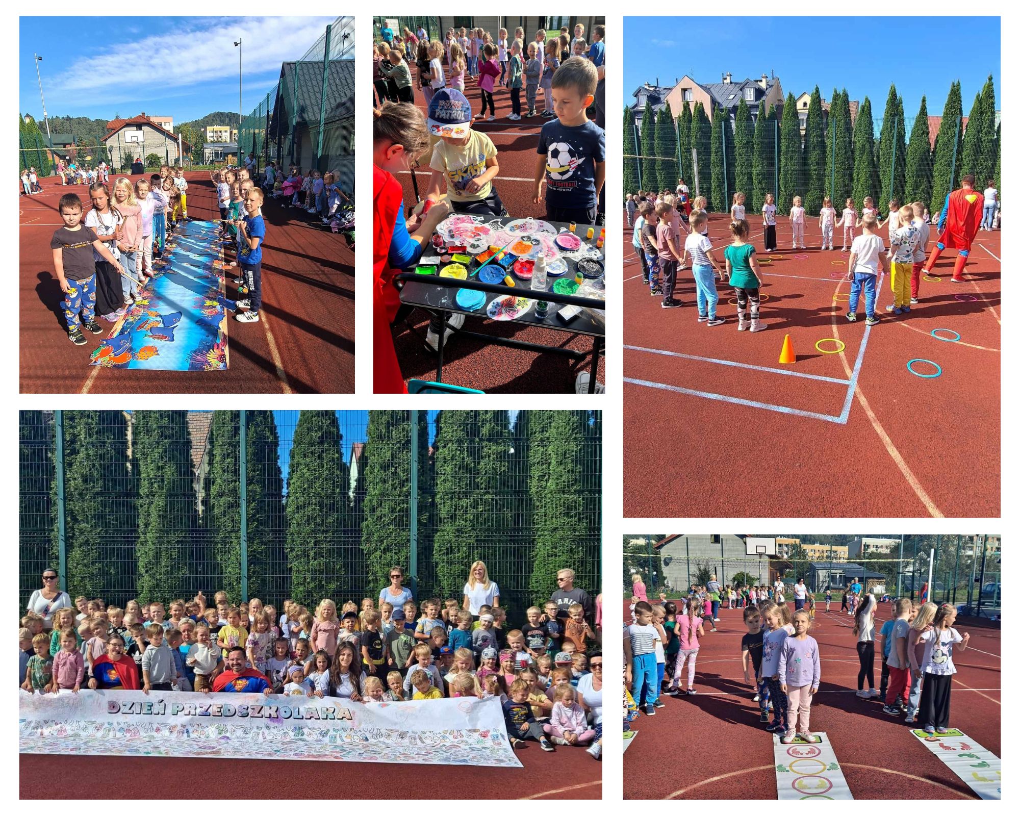 20 września wszystkie dzieci uczęszczające do przedszkola obchodziły swoje święto, gdyż tego dnia przypada Ogólnopolski Dzień Przedszkolaka. Z tej okazji dzieci ze wszystkich grup spotkały się na pobliskim boisku sportowym, gdzie czekały na nie przygotowane przez Animacje z ciocią Moniką atrakcje. Dzieci brały udział w zabawach, konkursach, tańcach, a także był pokaz baniek mydlanych. Dzień Przedszkolaka podkreśla wagę edukacji przedszkolnej, ale także dostarczył dzieciom wspaniałej zabawy i radości z bycia przedszkolakiem. Życzymy wszystkim naszym kochanym przedszkolakom uśmiechu na każdy dzień oraz radosnego i twórczego pobytu w przedszkolu.