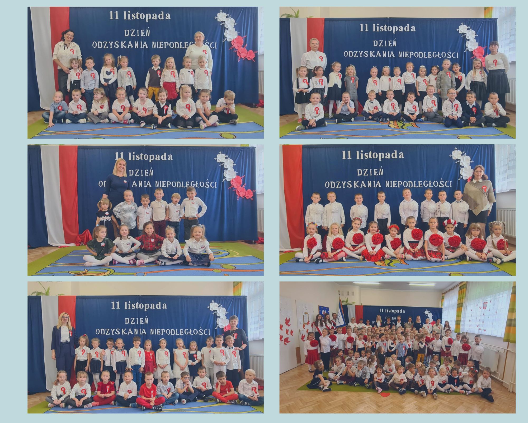 W naszym przedszkolu 8 listopada odbyła się uroczystość z okazji Narodowego Święta Niepodległości 11 listopada. Głównym celem spotkania było kształtowanie miłości i przywiązania do kraju ojczystego, jego kultury i tradycji oraz poznanie symboli narodowych naszego kraju. Grupy V i VI przygotowały program artystyczny. Dzieci ubrane odświętnie, z emblematami symboli i barw narodowych przedstawiły piękny występ. Tematyka wierszy, piosenek oraz tańców wzmocniła ich poczucie narodowe i patriotyczne. Przedszkolaki dumnie, przyjmując właściwą postawę „na baczność”, odśpiewały hymn Polski „Mazurek Dąbrowskiego”.Występ przedszkolaków, ich przygotowanie, zaangażowanie i artystyczny talent nagrodzony został gromkimi brawami.